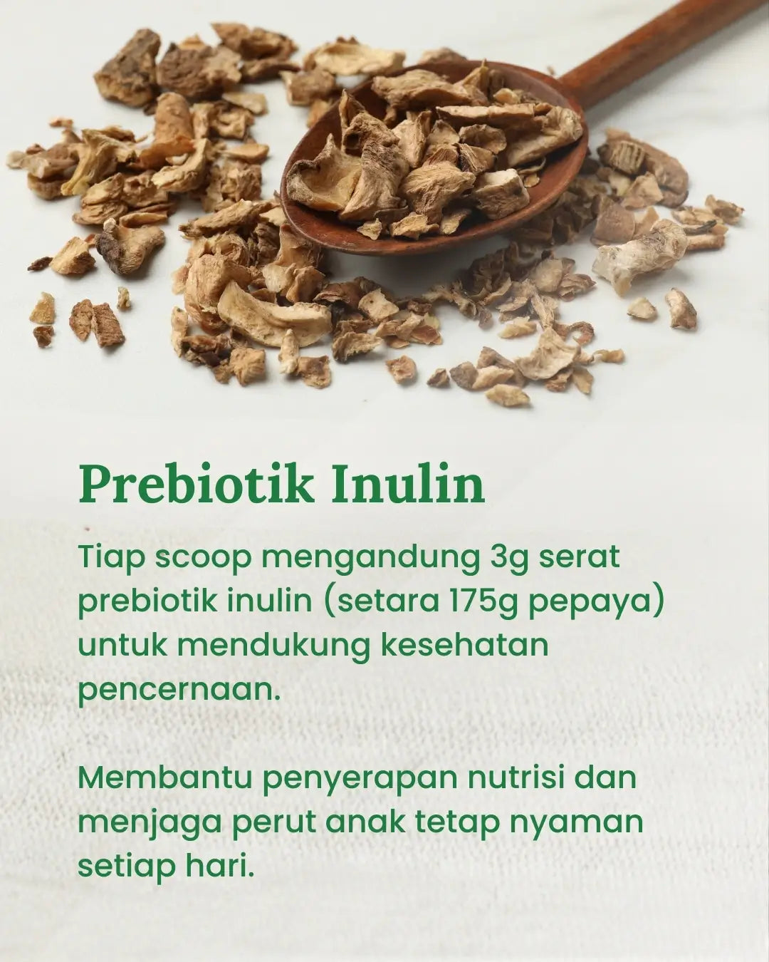 Loomi menggabungkan superfood nabati berkualitas dengan prebiotik inulin serta 16 vitamin dan mineral penting untuk mendukung kebutuhan harian anak. Campuran polifenol, karotenoid, dan klorofil berasal dari buah, sayur, dan hijau yang ramah vegan, sesuai preferensi halal karena tanpa gelatin dan tanpa alkohol, serta zero sugar dengan pemanis alami stevia.